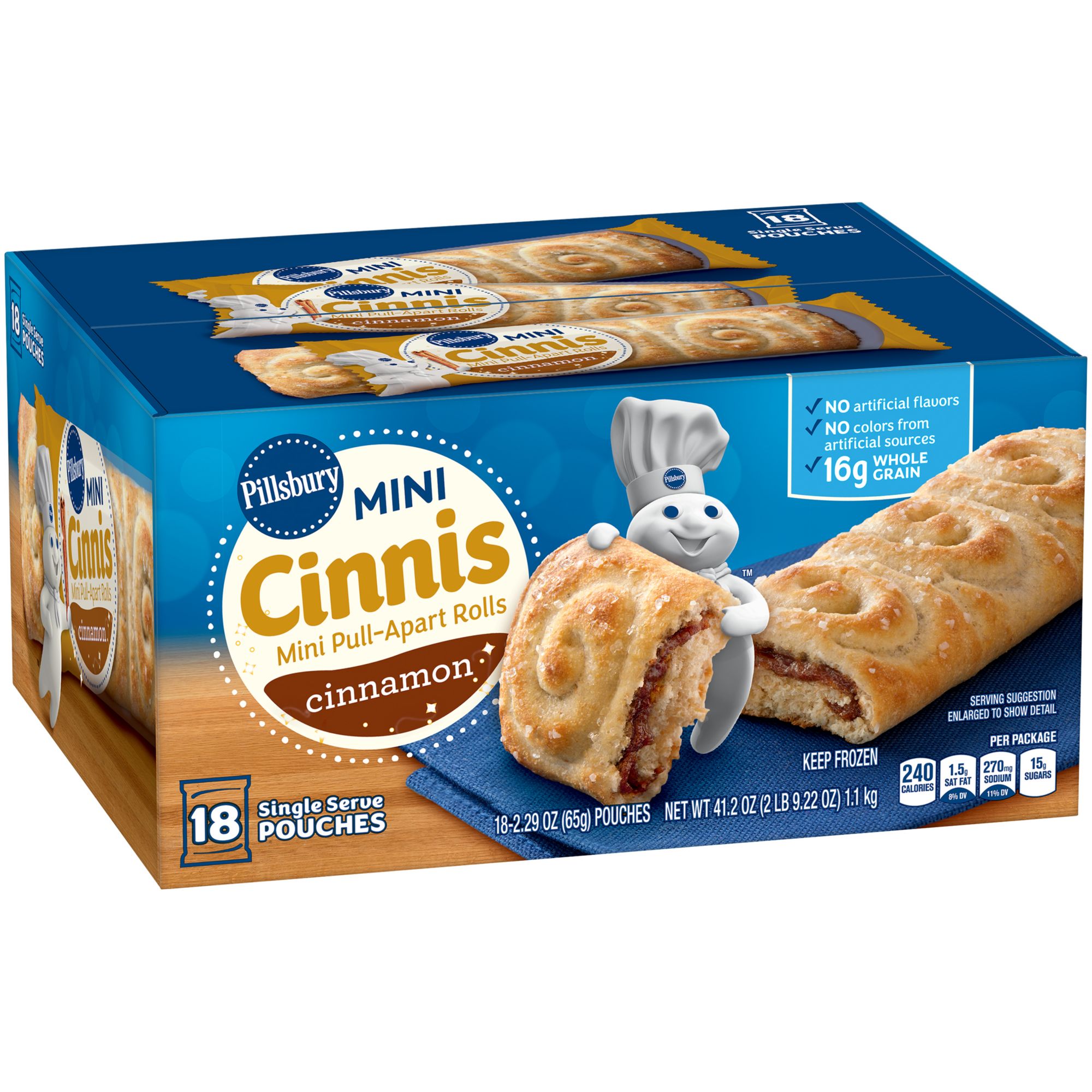Frozen cinnamon roll dough in an easy freezer to oven format with no proofing required from pillsbury.
